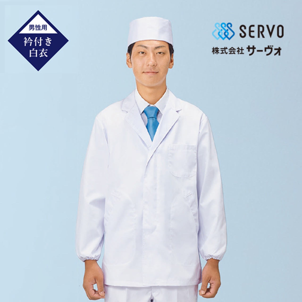 メンズ定番の長袖白衣です。袖口はゴム入りとなっております。