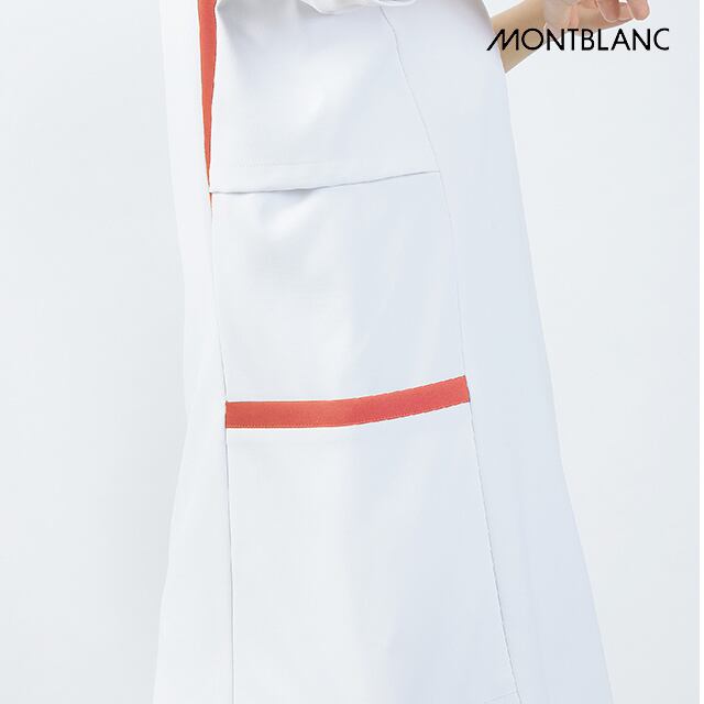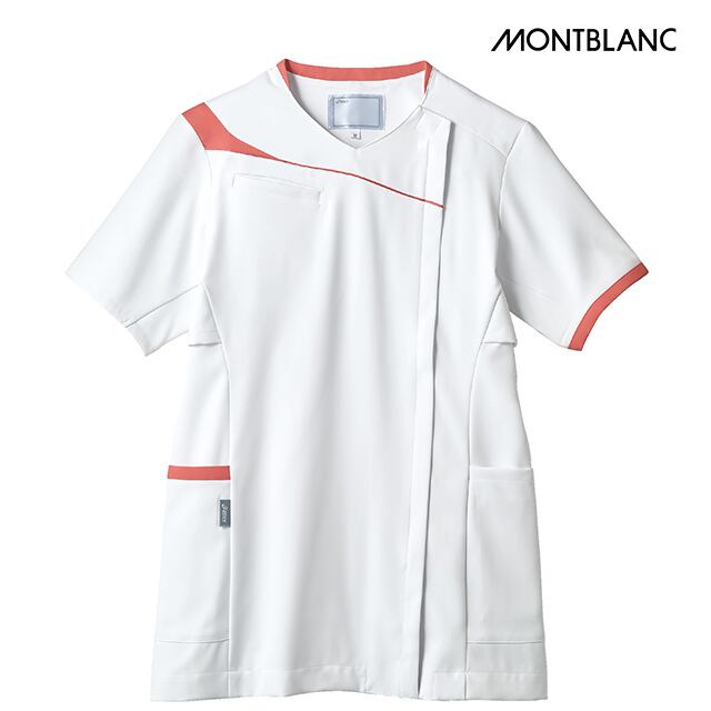 CHM354-0192 女性用スクラブ(半袖) ホワイト×コーラルピンク
